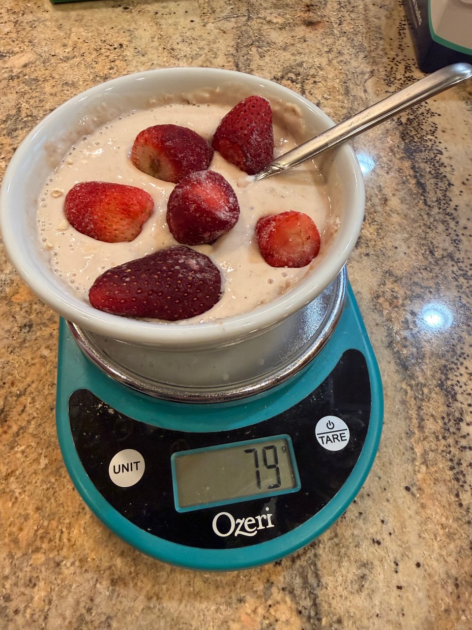 For years — years! — I’ve had a protein smoothie every morning. The ingredients have evolved over time, but now it includes protein powder, almond milk, superfood greens powder, and frozen strawberries. It’s delicious, and packs a lot of protein. But as I’ve worked through this metabolic reversal phase, I kept finding that an hour or two after downing my smoothie, I was hungry. Really hungry. Not good. I don’t want to start snacking or eating lunch at 10:30.
